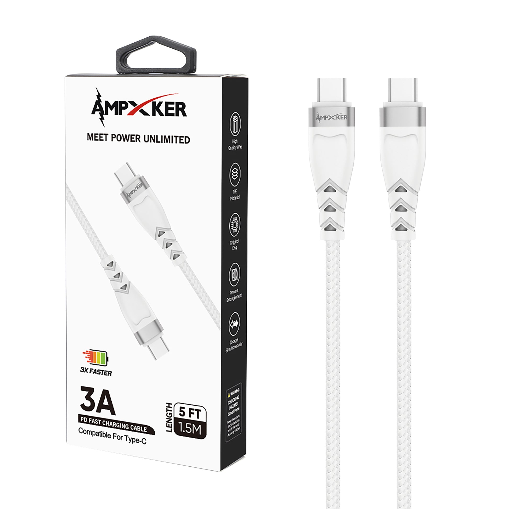 High-quality PD Type-C fast charging cable engineered for 3AMP power delivery. Built with a durable nylon-braided exterior and aluminum alloy connectors for long-lasting performance.