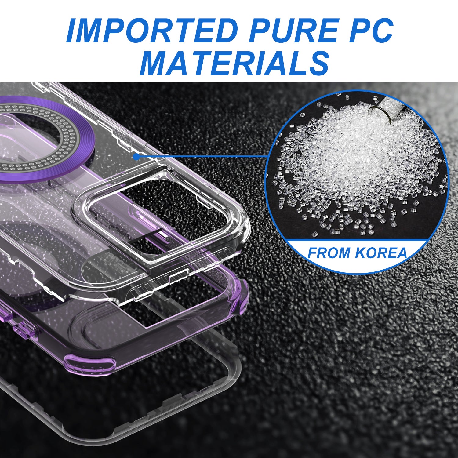 A stylish hybrid case featuring a crystal-accented magnetic ring, chrome highlights, and durable shockproof protection. Designed specifically for iPhone 14 Pro Max in a vibrant purple finish.