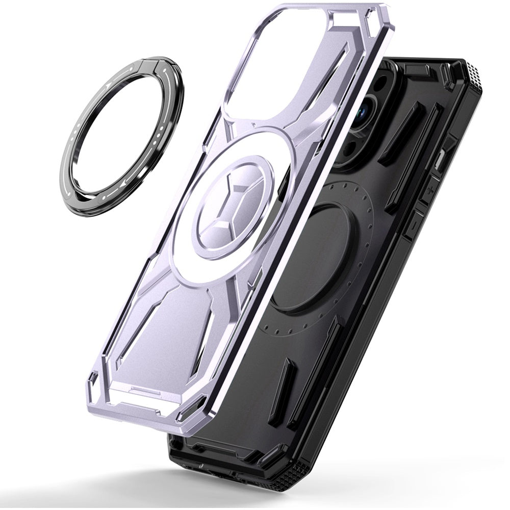 A rugged hybrid case featuring a 360° rotating loop kickstand and built-in magnetic ring for fast charging compatibility. Offers strong grip, shock protection, and hands-free convenience. Designed specifically for iPhone 14 Pro Max in light purple.