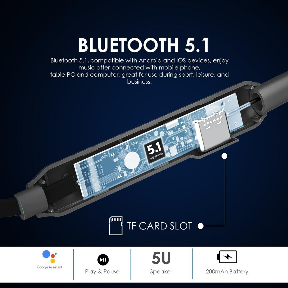 50-hour playtime Bluetooth neckband with deep bass, HD mic, 10mm drivers, and strong 280mAh battery for long standby and talk time.